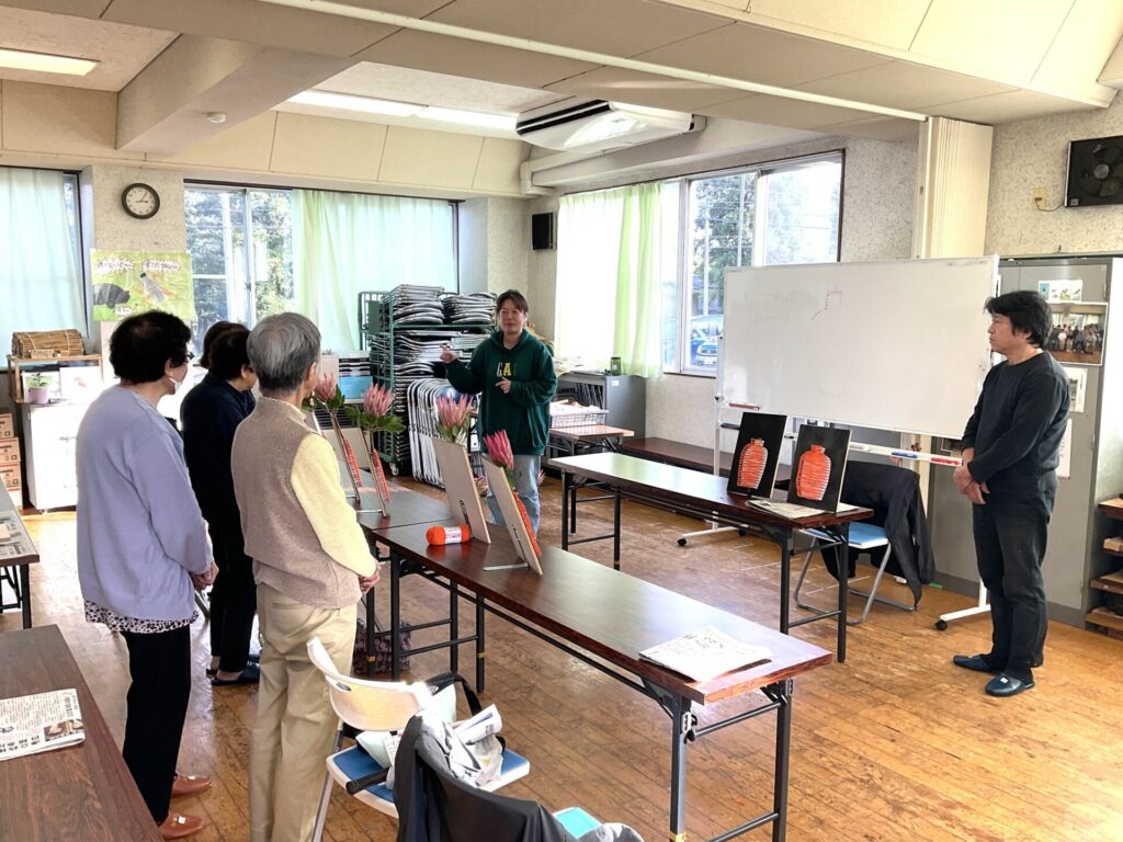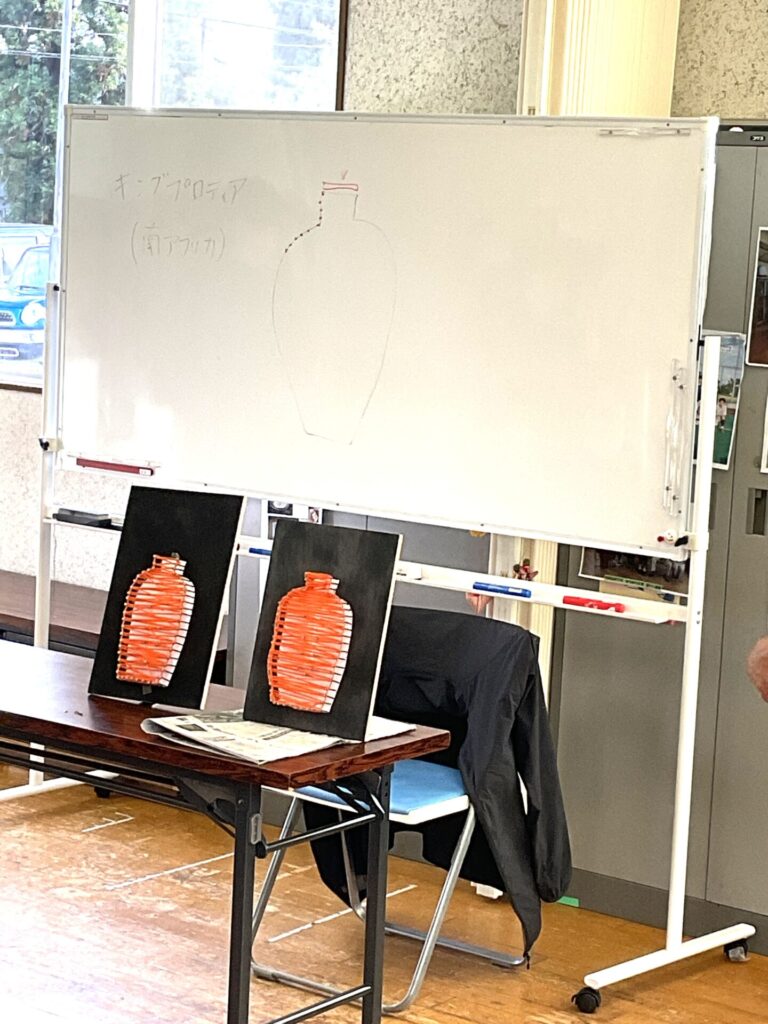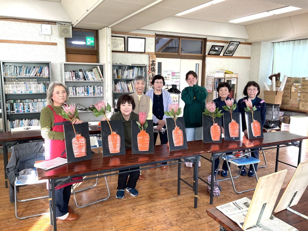 10月21日(火)第3回花講座を行いました。今回はかなづちで “トントン・トントン” 。何やら会議室から音が・・・・出来上がりの作品は秋まつりで披露しますので、近くで顔を寄せて(作りを)見てみてください。