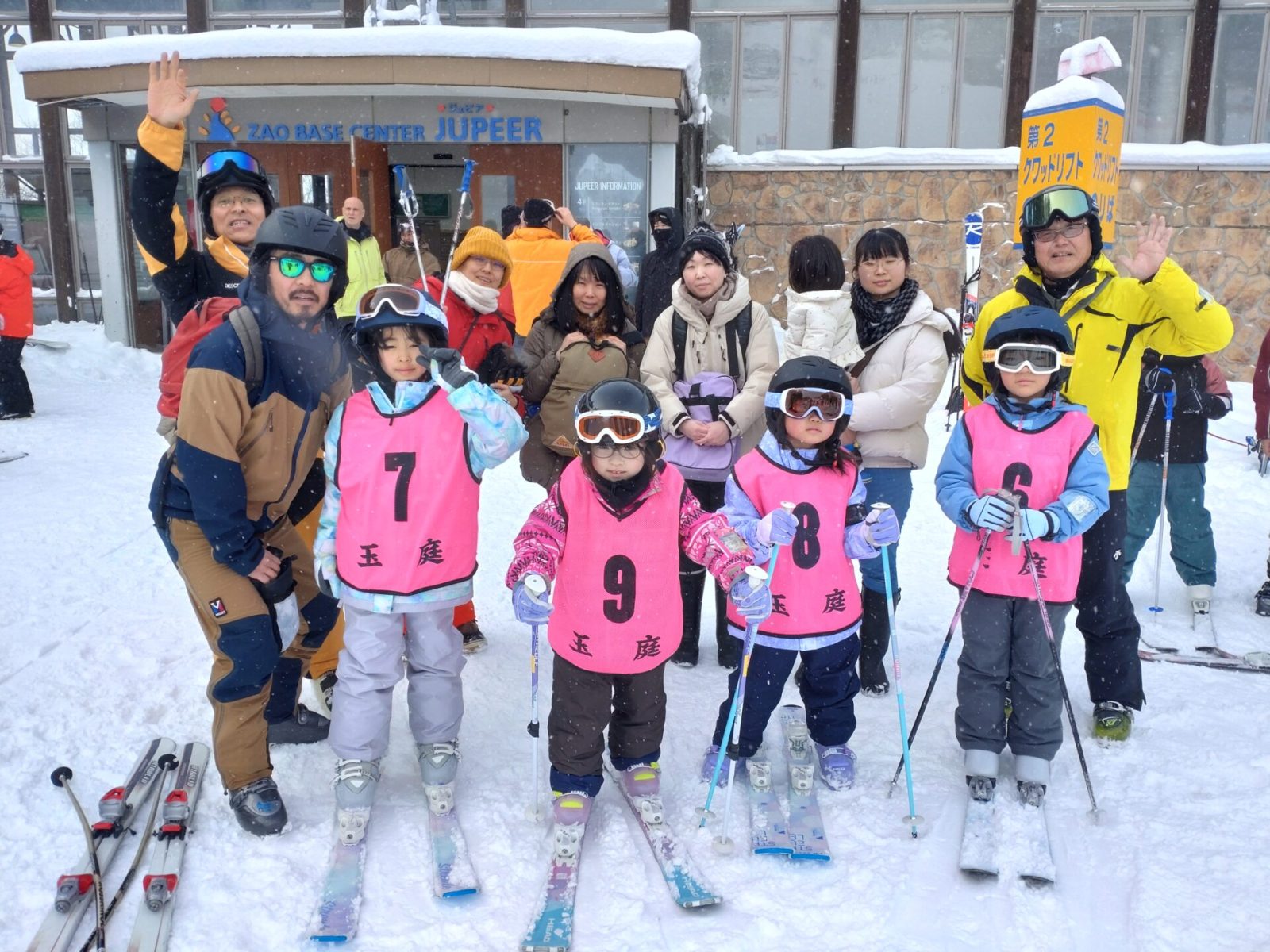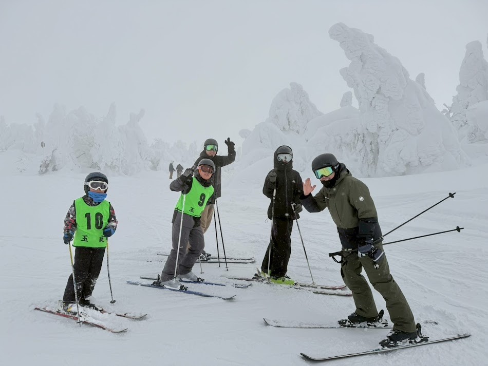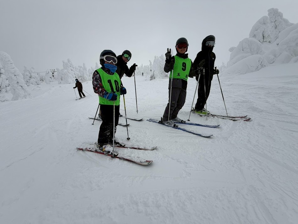 1月24日(土)、25日(日)玉庭スキー教室が蔵王温泉スキー場で行われました。中学生1名小学生5名、指導者6名、温泉チーム5名の合計17名の参加でした。今回は、「びゅんびゅんチーム」と「女子―ズ・チーム」に別れて行動しました。びゅんびゅんチームは3年生と6年生の男子です。脚力も活かしながらの6年生の滑り、そして3年生とは思えないフォームでスカイケーブルから山頂へアプローチ。その後一日で大森ゲレンデ、竜山ゲレンデ以外を滑り倒しました。その名の通り、びゅんびゅんでした!女子―ズ・チームは1年生と2年生の女子です。2年生はしっかりボーゲンでどんな斜面でも滑ることができます。ダイヤモンドバレーからの帰りもスカイケーブルを使わず高鳥コースからハーネンカムを経由して上ノ台へ戻ってきました。1年生の1人は、シーズン初でスキーで斜面に立てない状態でしたが、最後には、自立滑走まであと4時間・・・といったところまで上達しました。(超がんばりましたぁ~。嬉涙!)もう一人は、家族でのスキー経験も豊富で、前傾をとってきっちりした滑りができました。温泉チームの方には低学年のスキーや靴の運搬、食事の場所取り等、一番大切な部分を助けて頂きました。そして忘れてならないアフター・スキー。あんな話し、こんな話しと楽しいひと時を過ごしました。ご参加頂いた皆さんありがとうございました。また来年玉庭スキー教室で会いましょう。