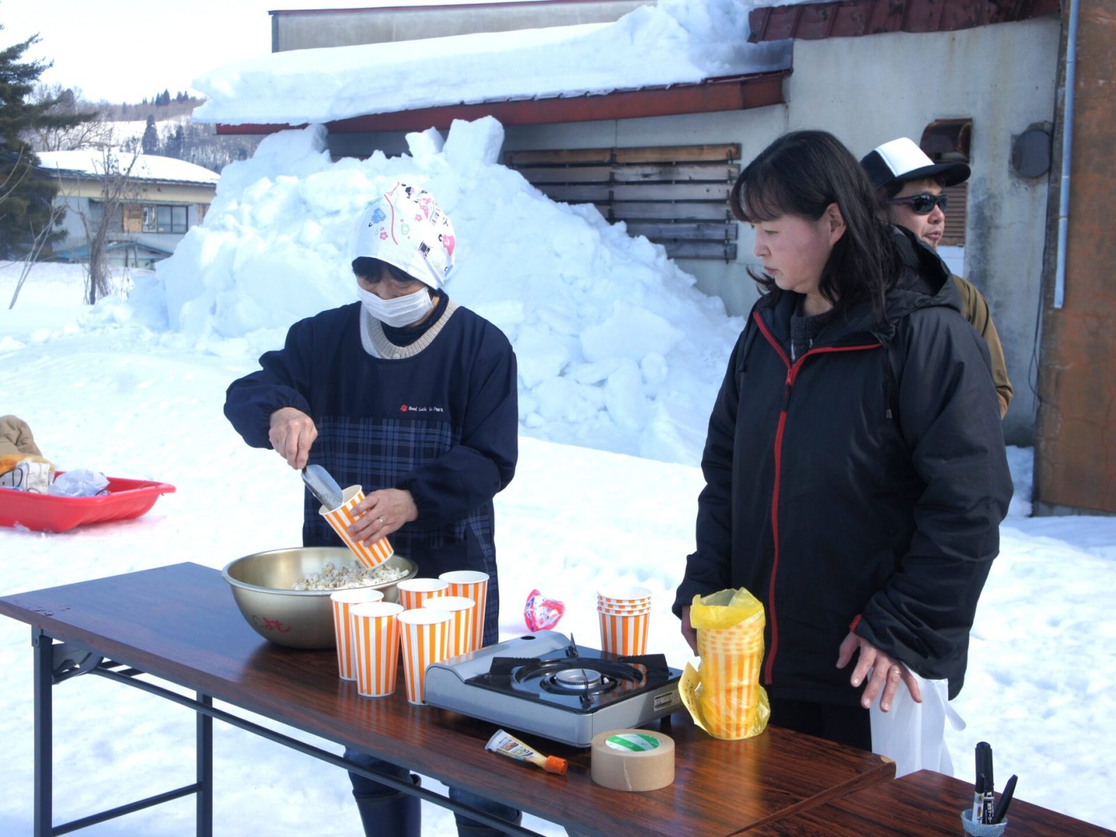 2月15日(日)玉庭YUKIMATSURIが行われました。1月末に175cmあった積雪が135cmまで減りましたが、お天気に恵まれ絶好の雪遊び日和でした。昨年に引き続きティラノザウルスが出没した四方山館グラウンド、ティラノザウルスのラジオ体操、荷物運び競争、記念撮影とプログラムが進みました。2台のスノーモービルも運行され、広大な田んぼを爽快に走るモービルは子どもだけでなくご父兄の方にも大人気でした。四方山山頂は地上約5.5m、昨年より低い雪山でしたが、山頂で深呼吸をすると澄んだ冷たい2月の空気が体の入り、心身が洗われるような感じでした。四方山西ゲレンデは5日前から毎日整備され、まるでピステン(雪上車)が入ったようでした。そんなゲレンデでのソリ滑りは大好評で、ゲレンデ閉鎖時間になっても「もっと滑りたい!」、「もう一回だけ・・・・」と子ども達に大人気でした。